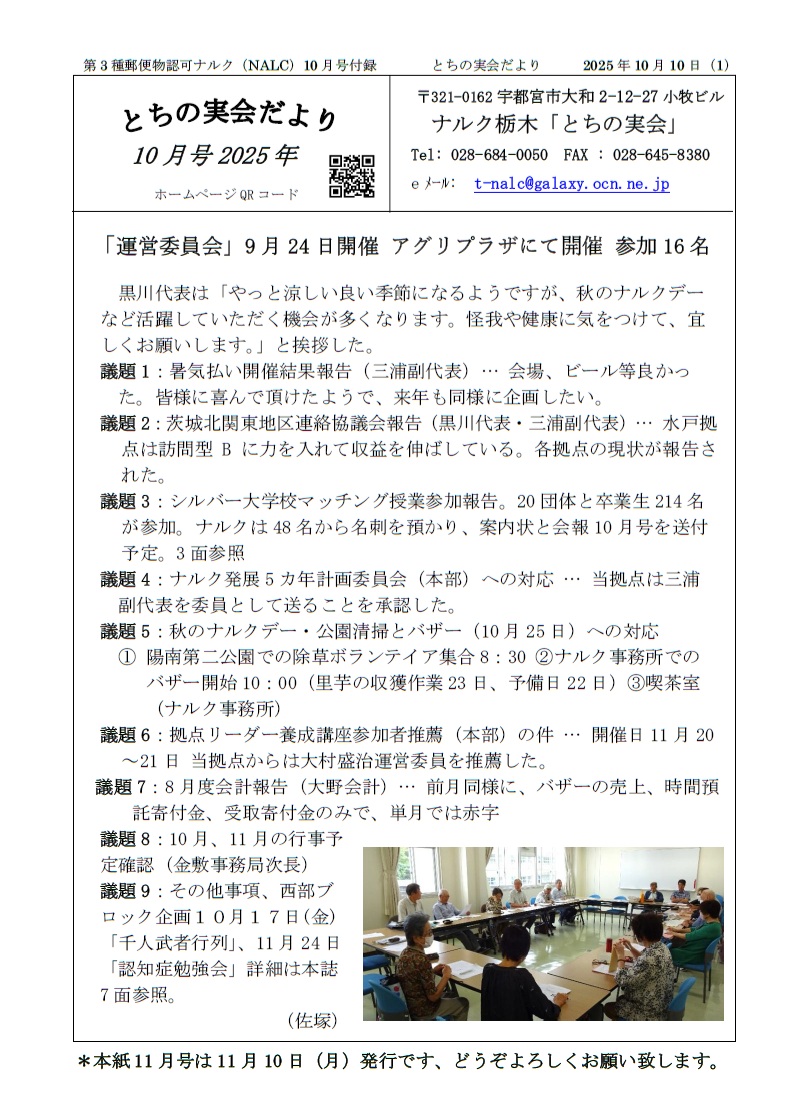 NALC(ナルク)とは Nippon Active Life Club の頭文字を取ったものです。 お気軽に声をかけてください。メールでのお問い合わせは以下のアドレスにお願いします。 t-nalc@galaxy.ocn.ne.jp |
