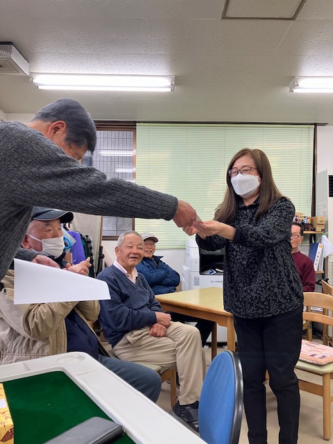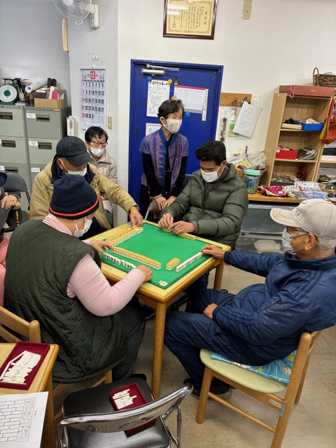 | 令和7年12月 健康麻雀大会を実施しました。 第2回健康麻雀大会 12月14日日曜日、第2回ナルク健康麻雀大会を開きました。集まったのは17名、大会のプレイヤーは13名、あみだくじで対戦相手を決め、 |